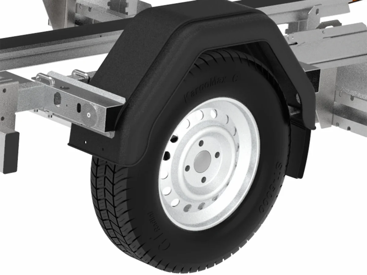- Hjulskjermer i plast: Hjulskjermene på våre båthengere er laget av plast for å eliminere skarpe kanter som kan skade båten under opptrekking og sjøsetting av båten.