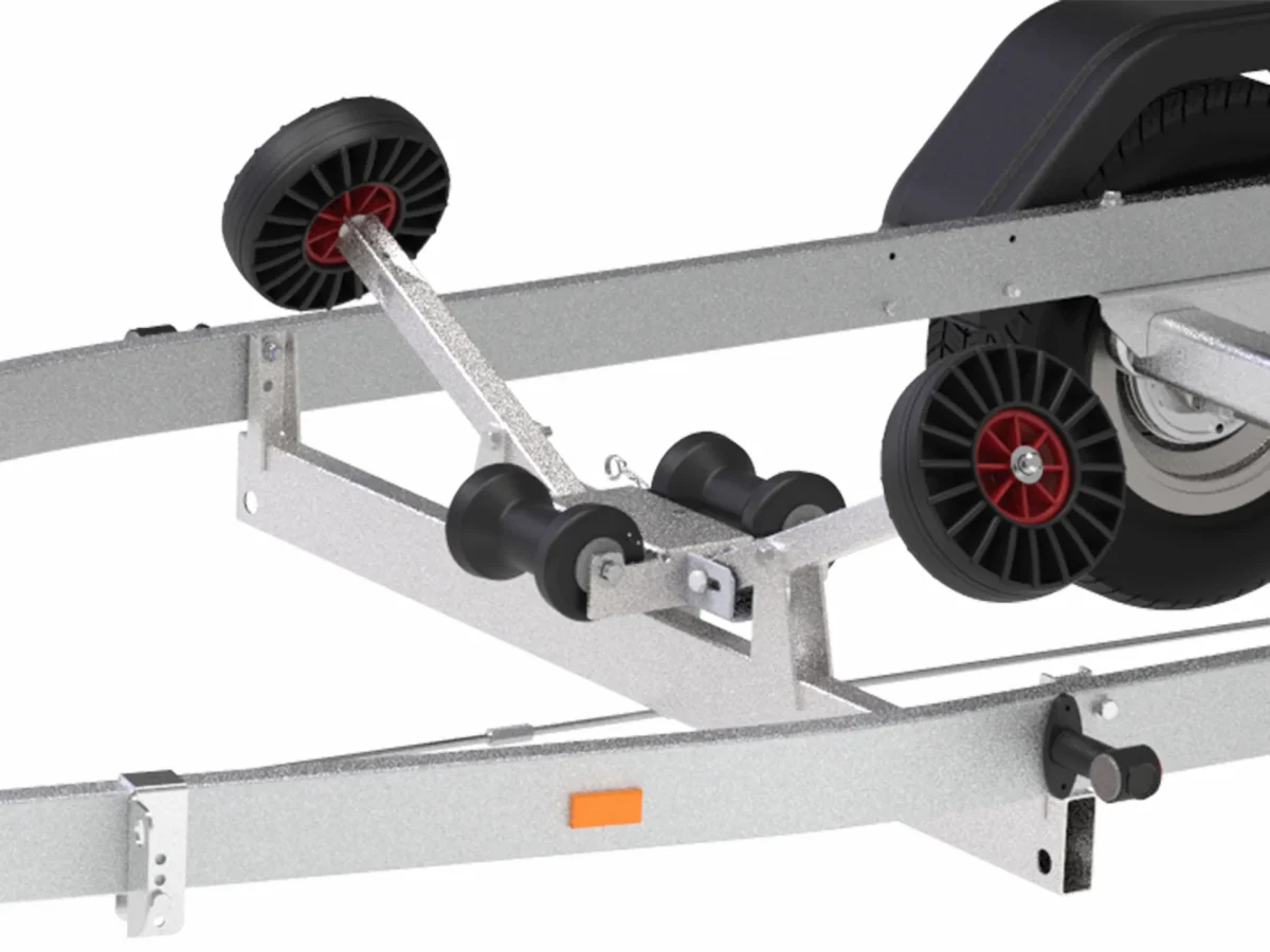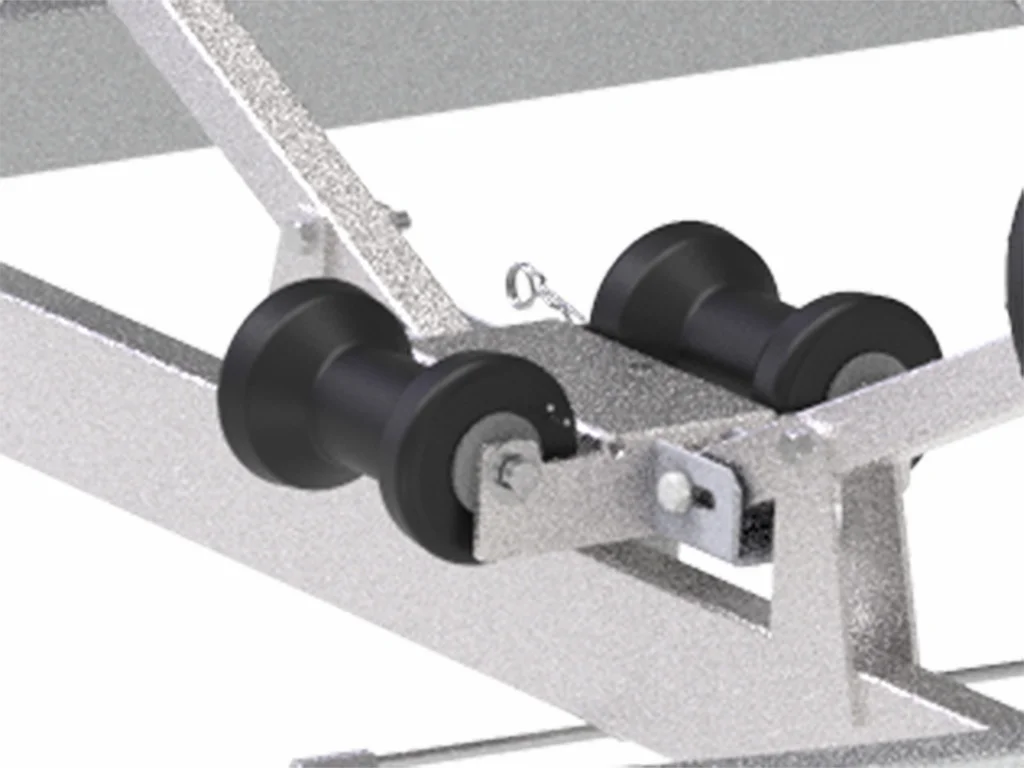 • Kjølruller med suverene rulleegenskaper: Vår båthenger har kjølruller laget av svært slitesterke materialer, med en skråkant som leder båten mot senteret av rullen. Dette reduserer slitasjen på både skrog og ruller, og sikrer god styring av båten. Korrosjonsbeskyttet hylse i kjølrullene samt bolter gir ekstra holdbarhet.