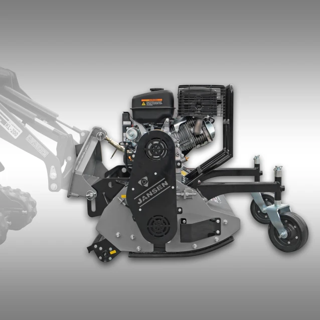 Beitepusseren fra JANSEN® BMM-100 er det perfekte supplementet til kompaktlasteren JANSEN® KL-200. Denne robuste Beitepusseren er spesialdesignet for frontmontering og imponerer med sin kraftige bensinmotor, som driver klipperen helt uavhengig av bærekjøretøyets hydrauliske system. Dette gjør BMM-100 til den ideelle løsningen for KL-200, som opererer uten en ekstra hydraulisk krets.