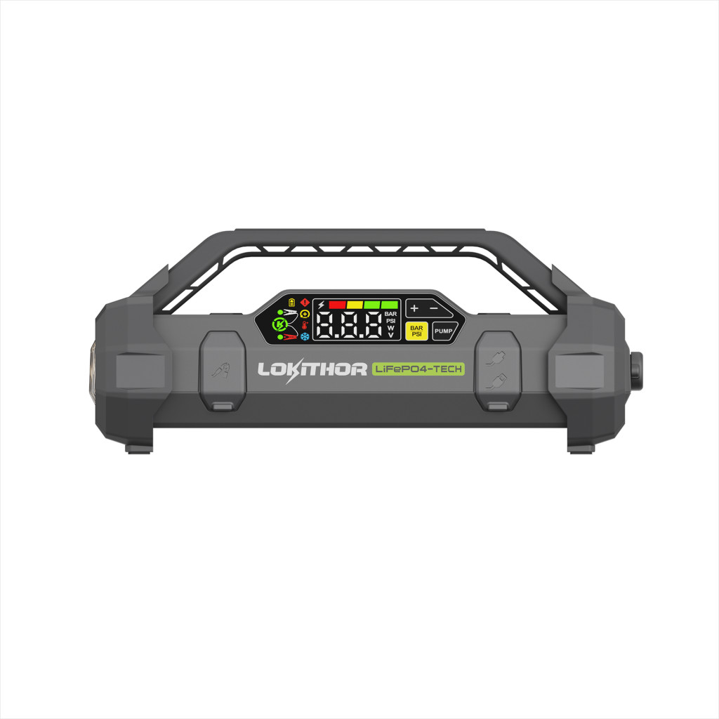 Lokithor JA3000PRO er flaggskipet i JA-serien – en komplett nødenhet med 3000 A starthjelp, luftkompressor (150 PSI), kraftig LED-lykt og 100 W USB-C PD-powerbank. Den bruker LiFePO₄-celler for ekstra sikkerhet og lang levetid, og leverer pålitelig ytelse under alle forhold.