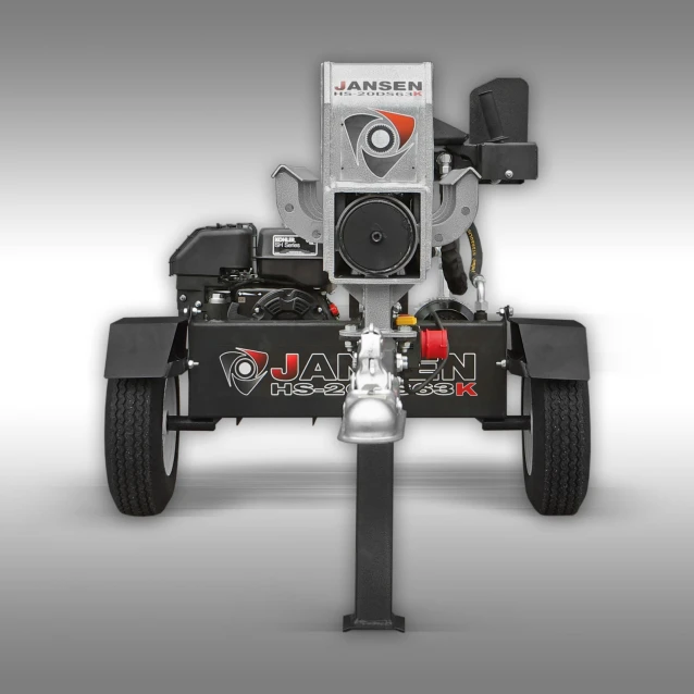 Jansen HS-20DS63K dobbeltvirkende vedkløyver er laget etter våre spesifikasjoner og er en liten revolusjon i vedkløyverdenen. Denne maskinen kløyver i begge retninger (både i fremover- og returfasen!), og som et resultat kan du jobbe dobbelt så raskt! Den “tomme” returfasen er borte, og dermed trengs det mindre energi, noe som gjør denne modellen langt mer effektiv! Den har en reell kløyvekraft på 20 tonn (17 tonn i returfasen), en svært robust og høyverdig 2,2 kW elektrisk motor og en svært robust Kohler bensinmotor av høy kvalitet på 6,5 hk.